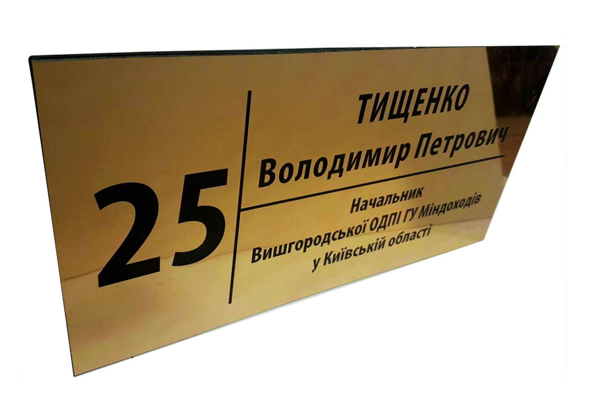 Табличка офисная на золотистом пластике в Одессе. Толщина 1,5 мм