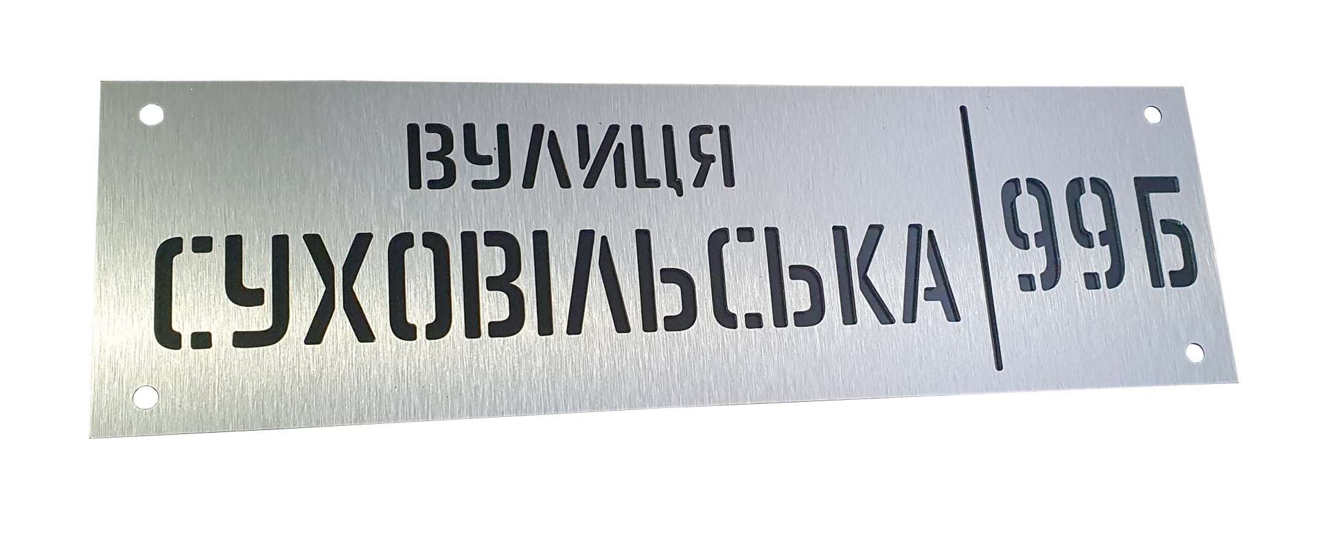 Адресная табличка из композита в Одессе. Буквы прорезаны на сквозь, заду идет подкладка из темного или любого другого цвета акрила