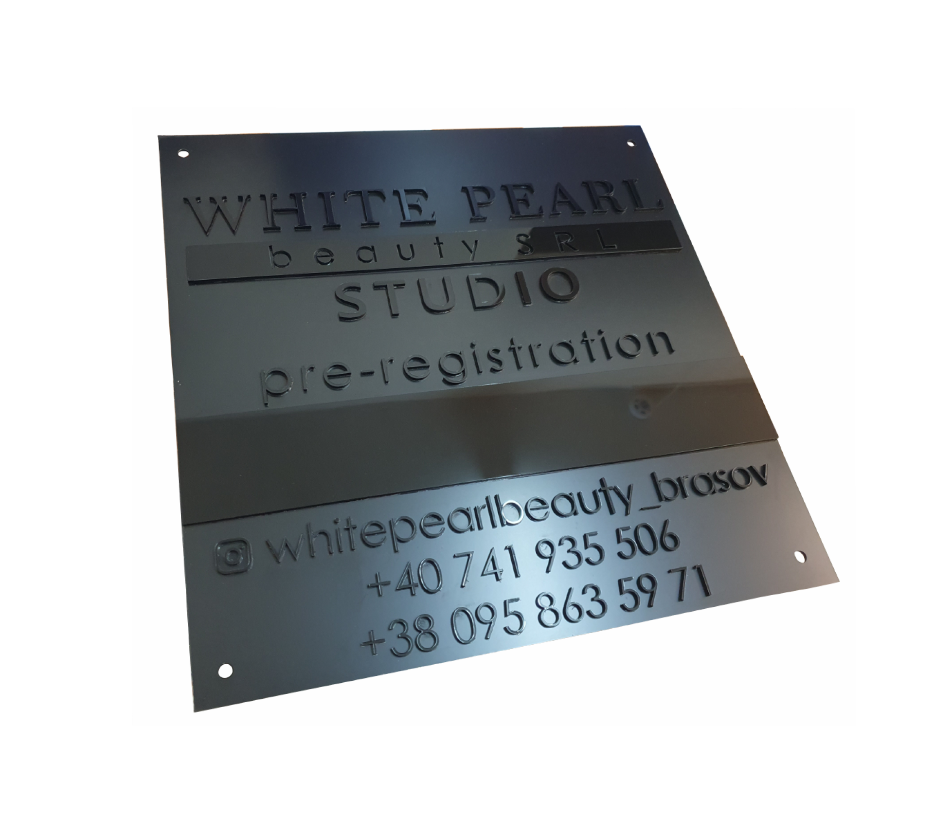 Вывеска объёмная с рельефными черными буквами из акрила на черном композите в Одессе. Данная вывеска подходит для наружного и внутреннего использования.